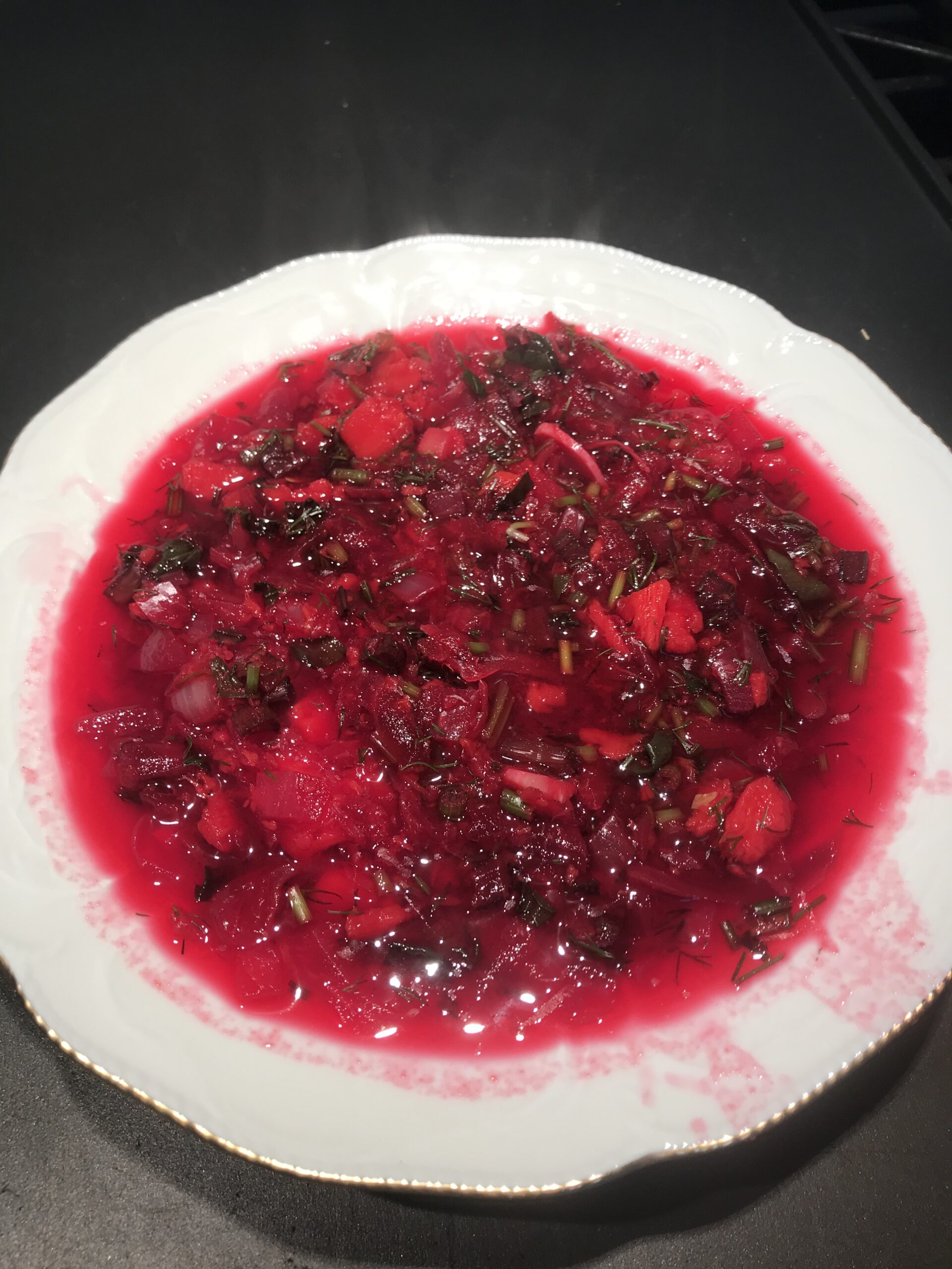In a big soup pot sautĂŠ onions, carrots, celery, and peppers using a bit of broth or water for 5-8 minutes. Then add vegetable broth, potatoes and cook for 10 minutes. Then add beets, beans, and sauerkraut, cover the pot with the lid and simmer for another 5-7 minutes on low heat. Add minced garlic, cover with the lid, and turn off the heat. Serve with chopped parsley and a teaspoon of a plane plant-based yogurt, if desired.