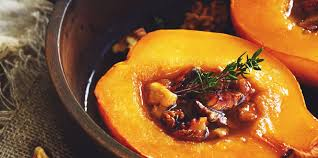 Baked quince stuffed with raisins and walnuts